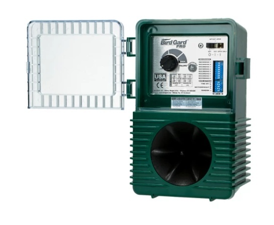 dstraszacz ptaków Bird Gard Pro został wyposażony w zaawansowany panel kontrolny który pozwala na ustawienie w dowolny sposób rozbudowanych funkcji urządzenia. Urządzenie Bird Gard Pro umożliwia wybór m.in.: rodzaju emitowanych odgłosów ptaków drapieżnych, porę dnia aktywacji urządzenia, częstotliwość wydawania dźwięków oraz tryb pracy (losowy/standardowy). Odstraszacz został również wyposażony w regulator głośności, specjalnie zaprojektowana obudowa jest odporna na działanie zewnętrznych warunków atmosferycznych oraz promieniowanie UV.
