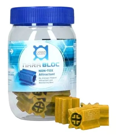 NARA BLOC to smakowy, nietoksyczny blok z tworzywa sztucznego, służący jako przynęta dla myszy i szczurów. Całkowicie wolny od alergenów, dzięki czemu może być stosowany nawet w przemyśle spożywczym. Może być doskonale stosowany w ramach zintegrowanej ochrony przed szkodnikami (IPM).